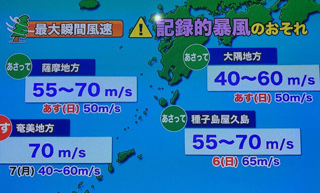 夕方、鹿児島の地方番組で台風特集をやっていた。